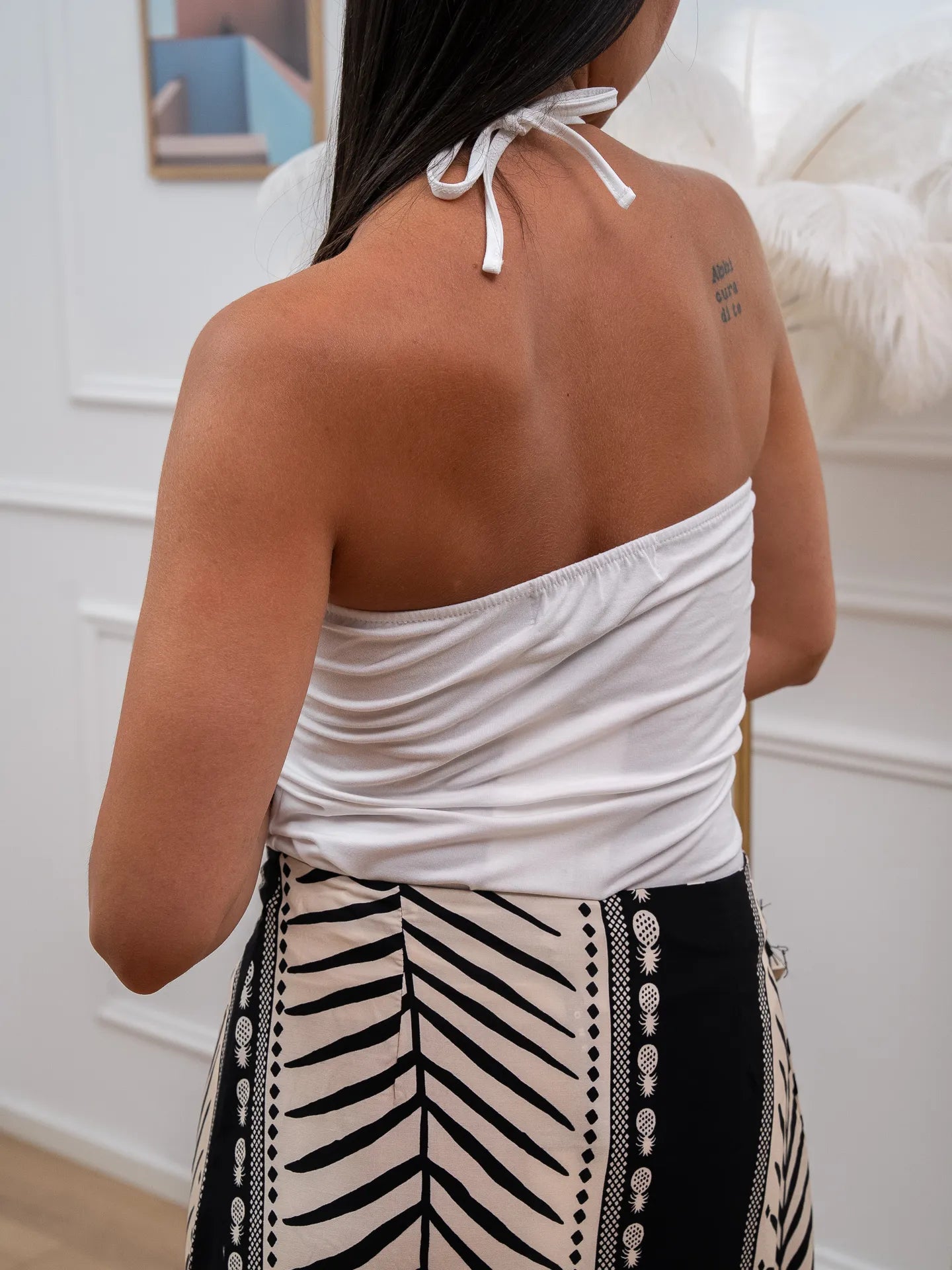 Top color latte HaveOne. Modello a fascia, fit regolare con laccetti da annodare sul retro del collo.