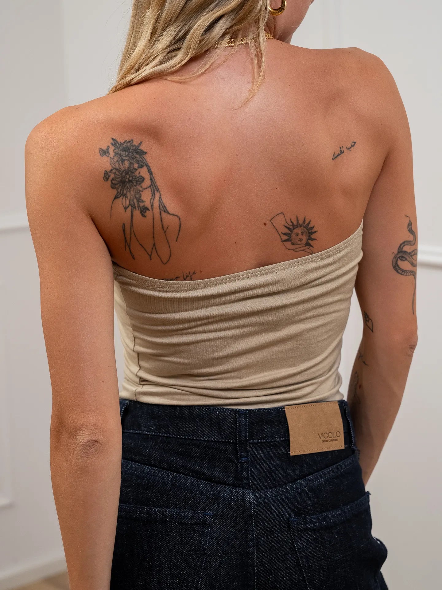 Top color sabbia Vicolo. Modello basic a fascia con elastico sul bordo. Fit aderente.