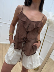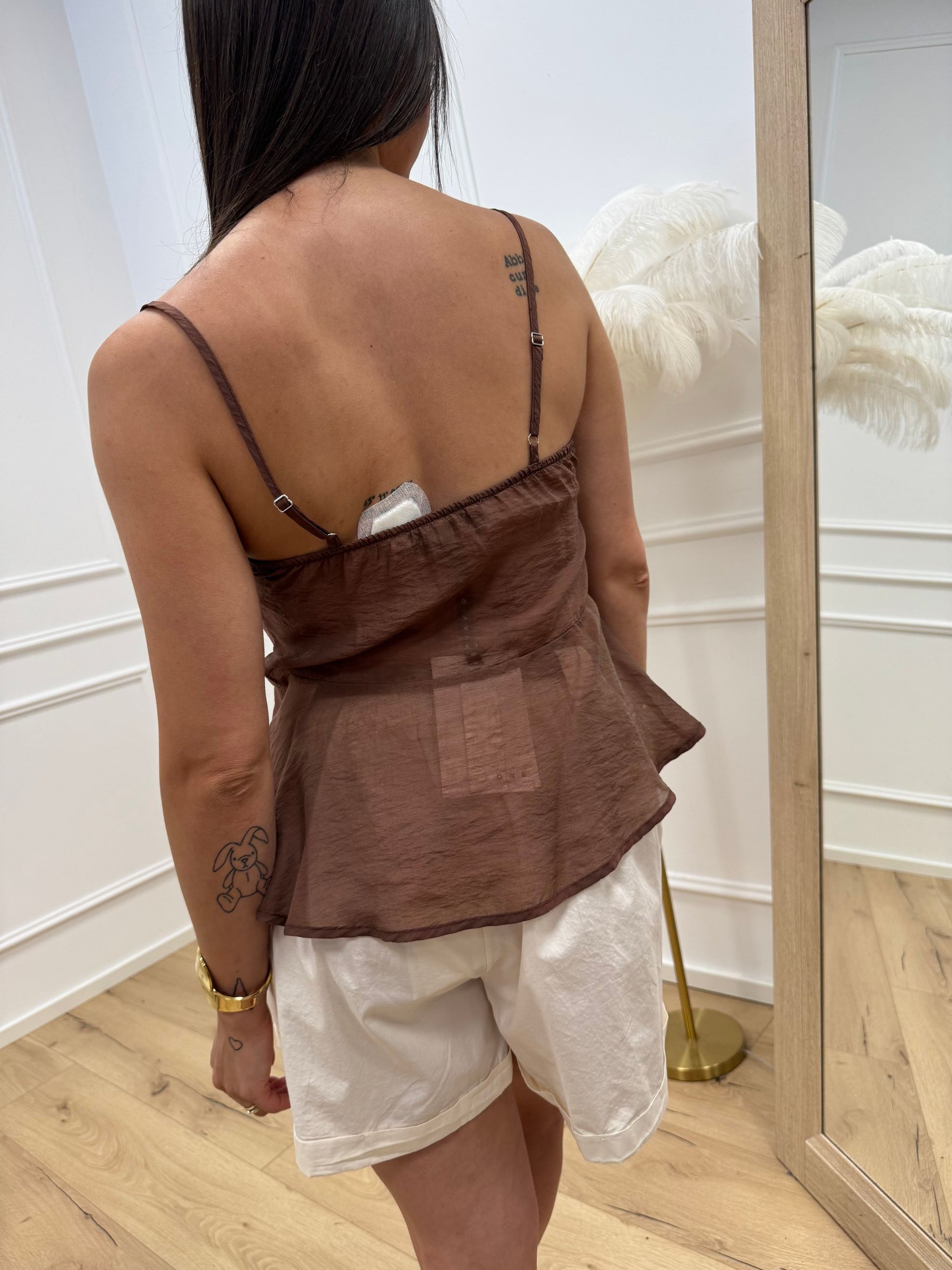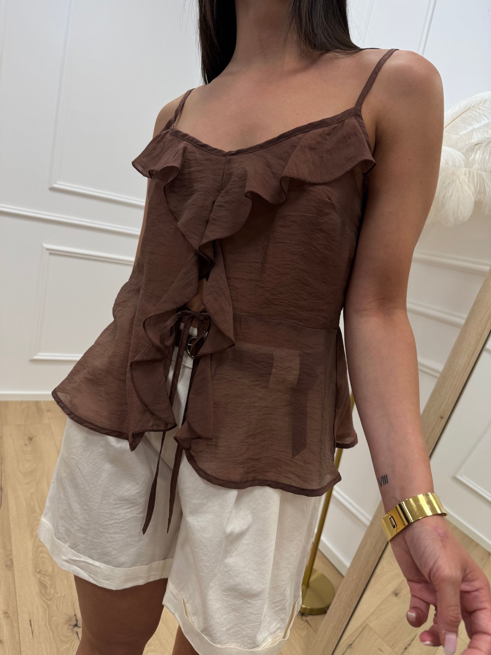 Top cioccolato in lyocell con laccetti e rouches - HaveOne