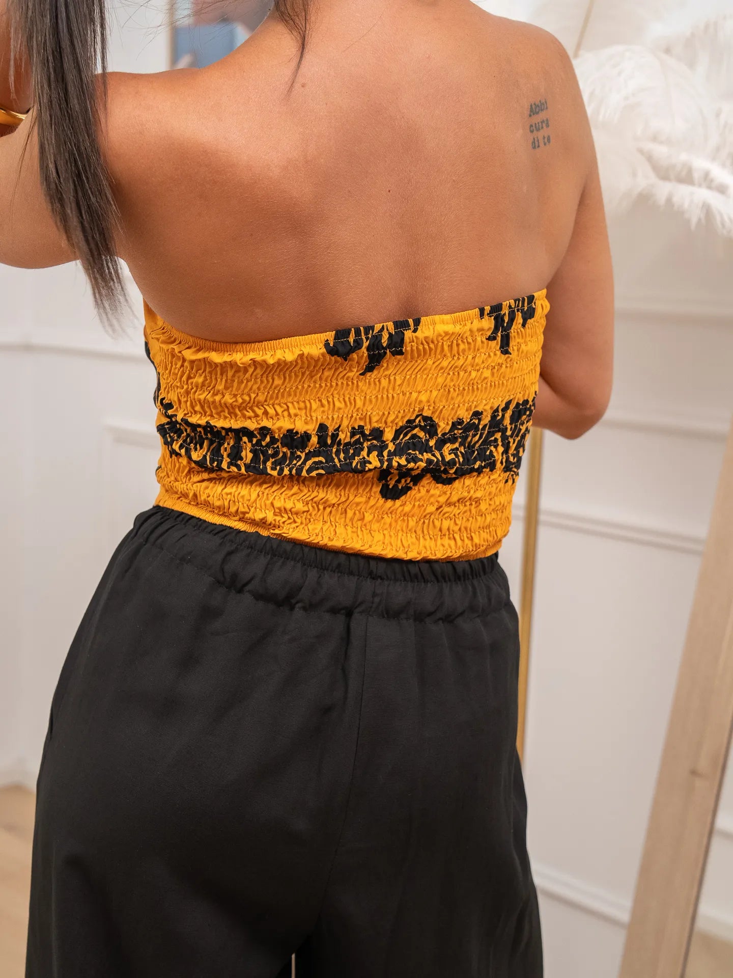 Top foulard fantasia Jasmine in viscosa Tensione In. Modello fit cropped taglio stile foulard con punto smock sul retro.