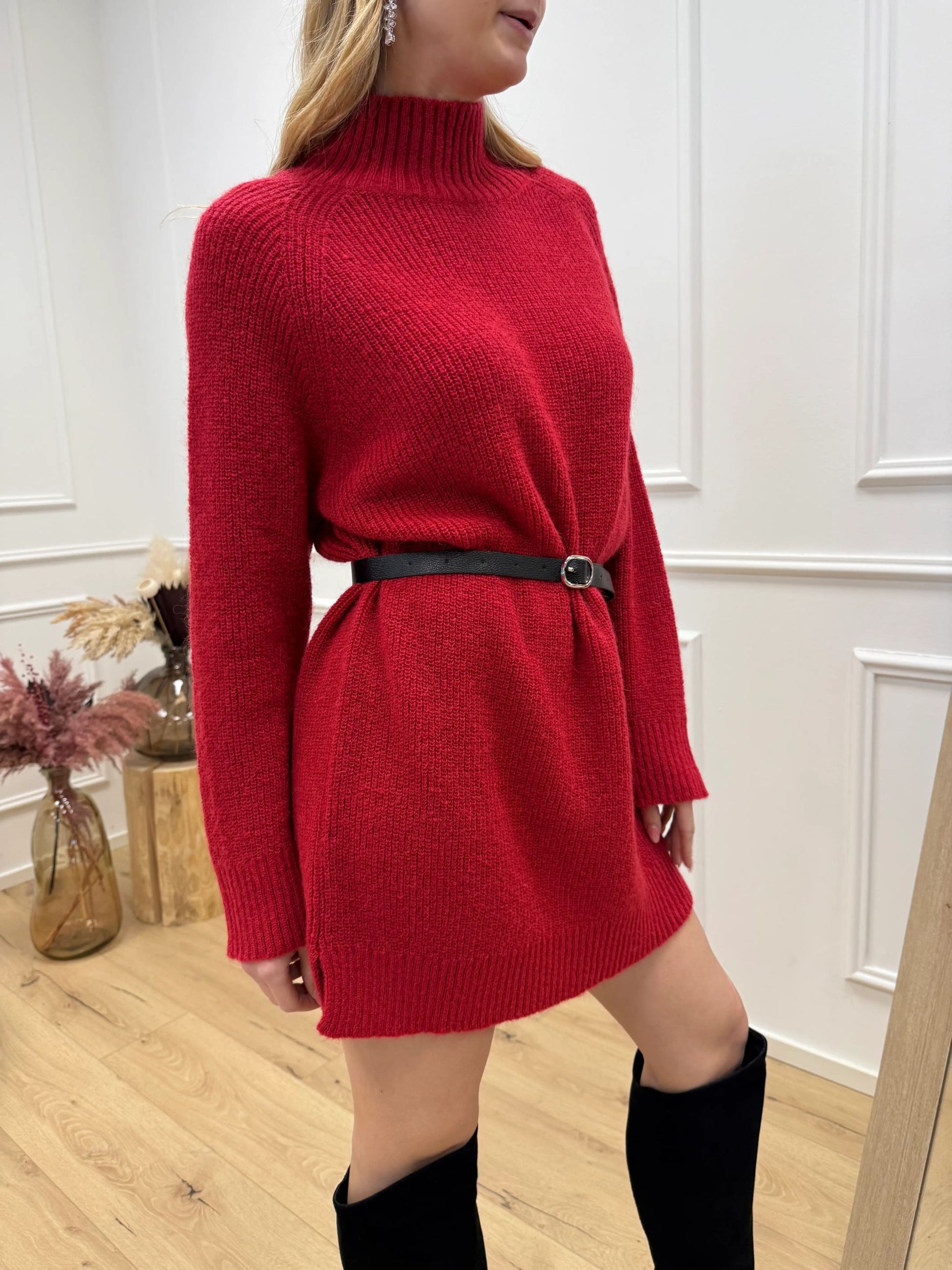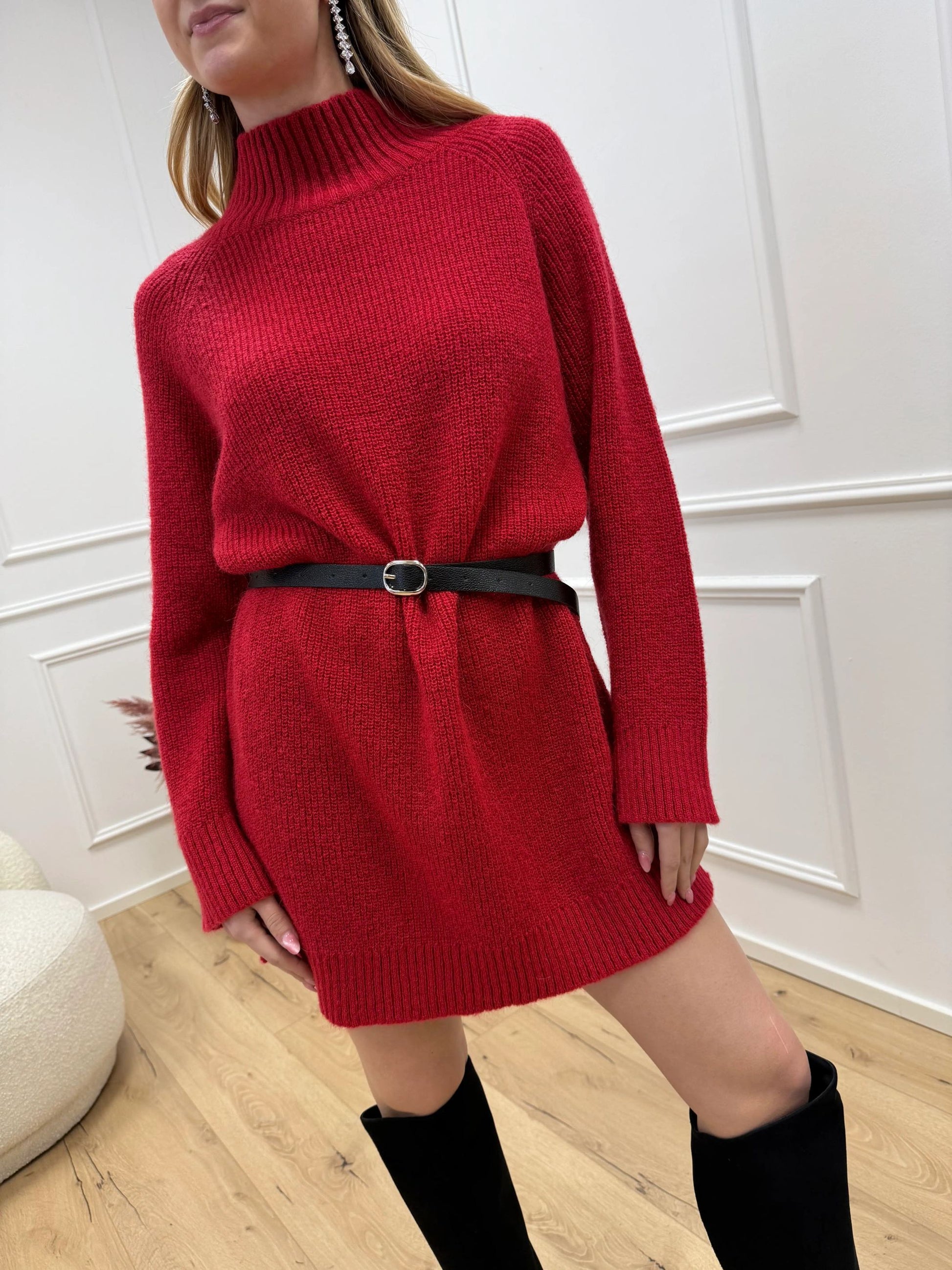 Vestito dolcevita rosso con cintura - Kontatto