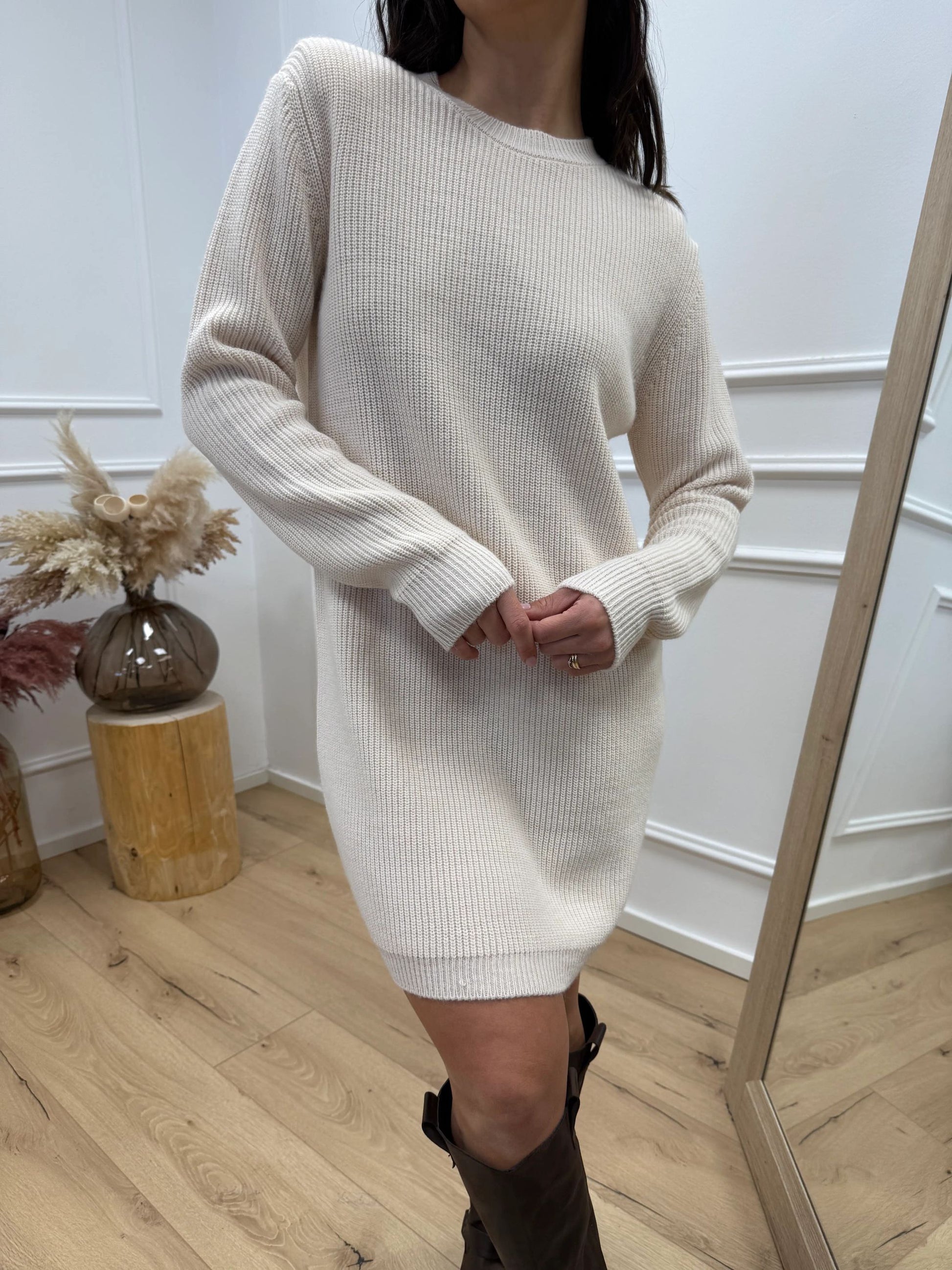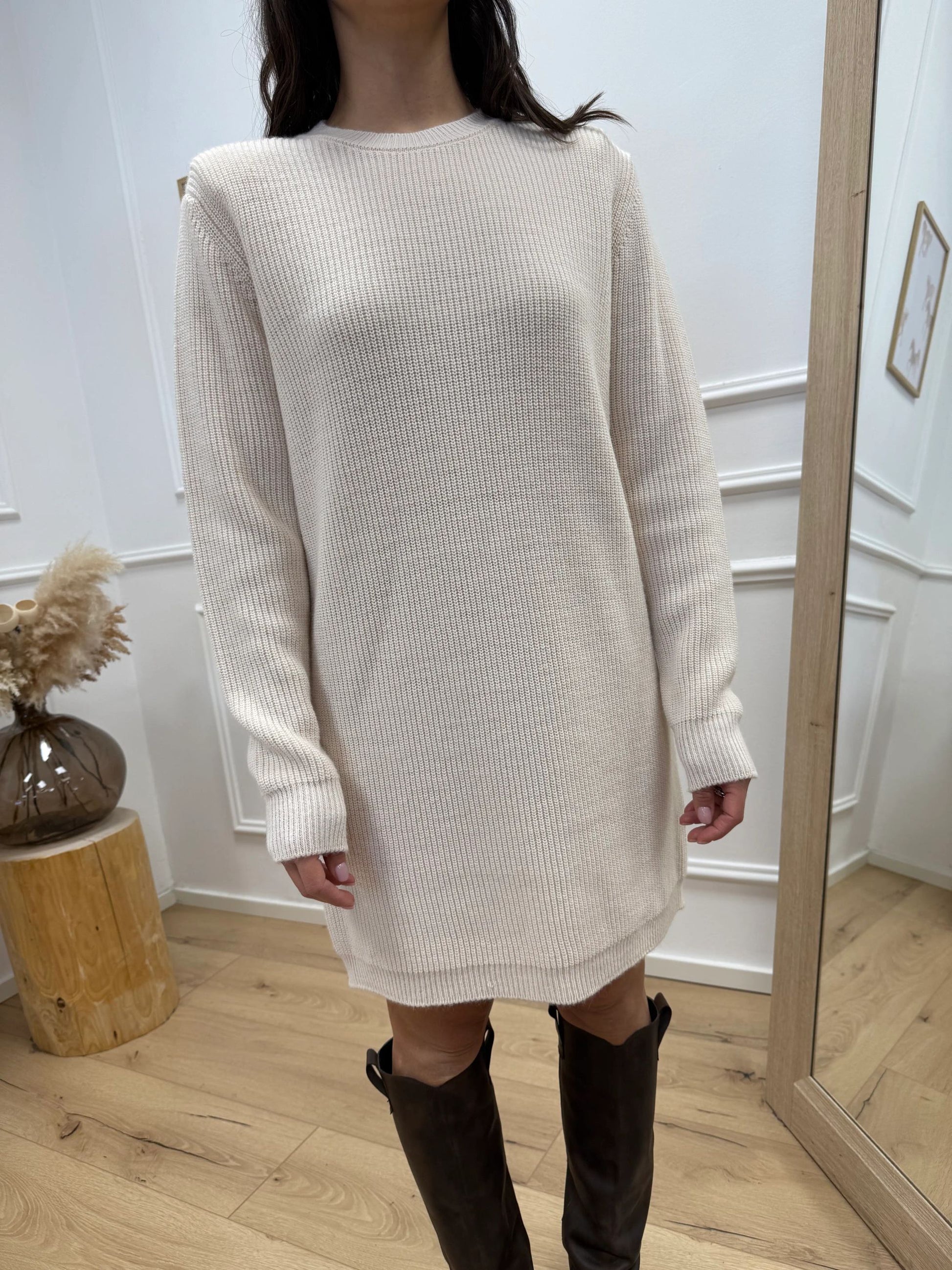 Vestito in maglia color pasta HaveOne. Modello girocollo a manica lunga. Fit morbido con dettaglio di spalline imbottite.