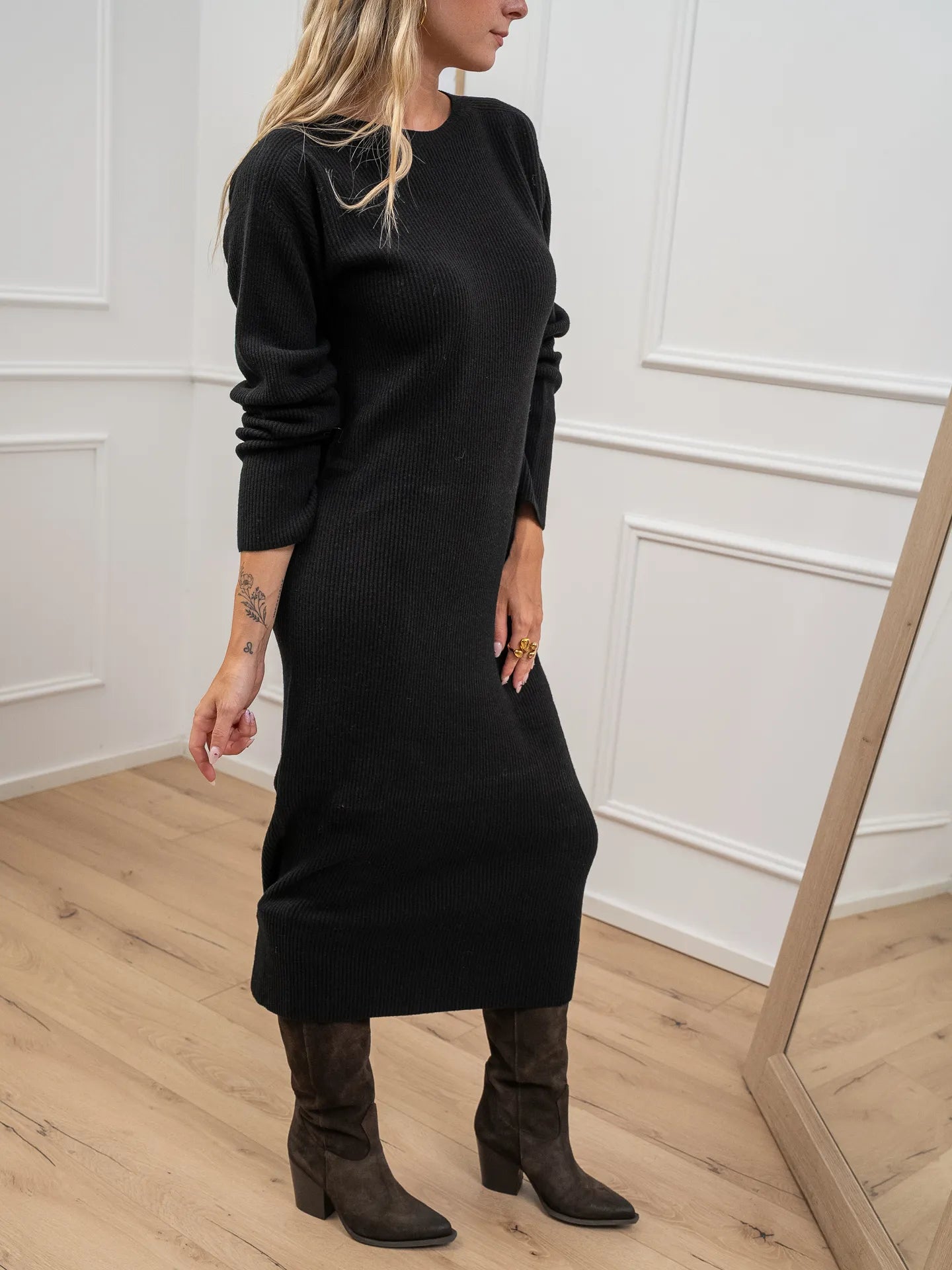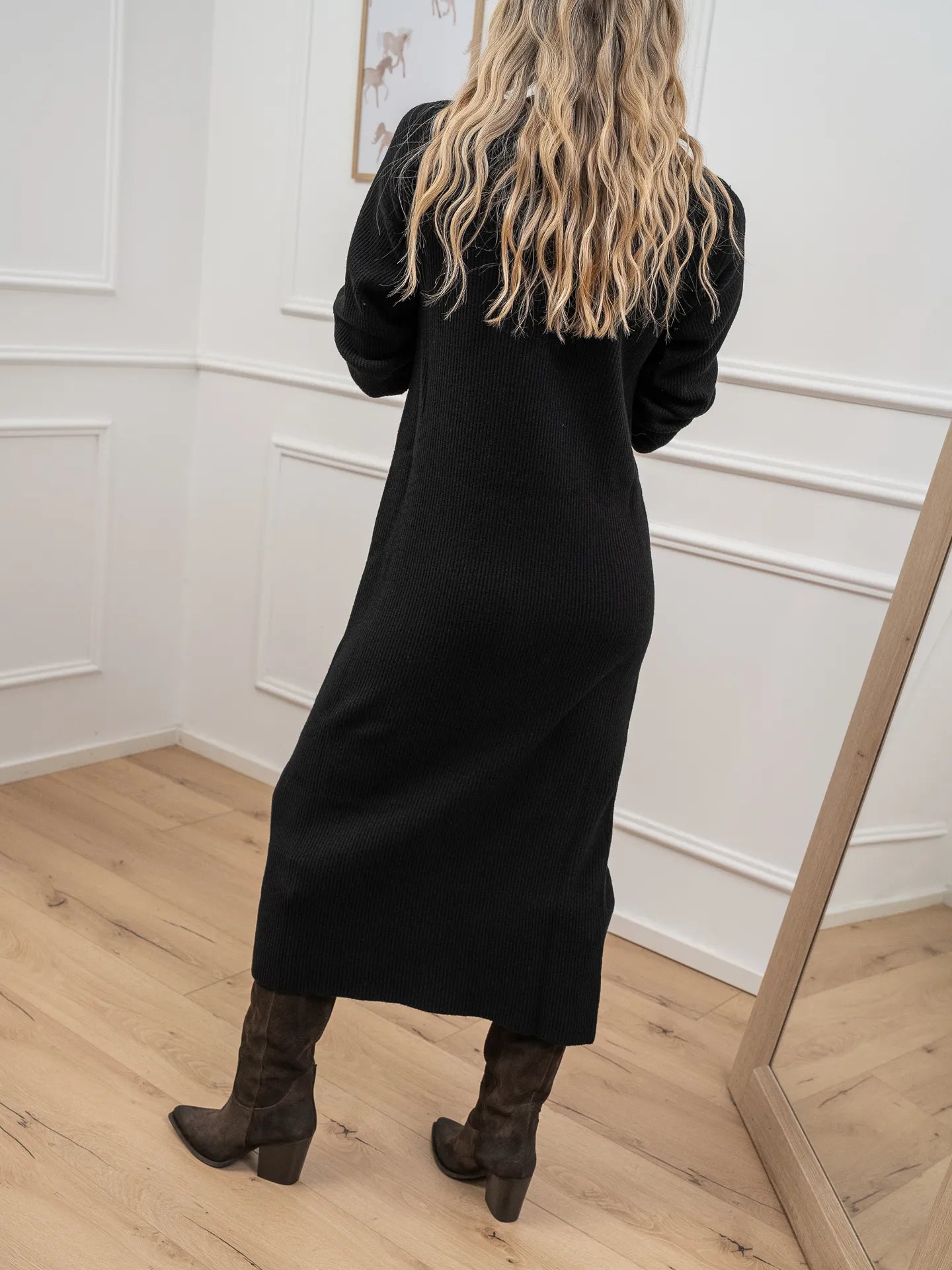Vestito lungo a coste nero misto lana - Kontatto