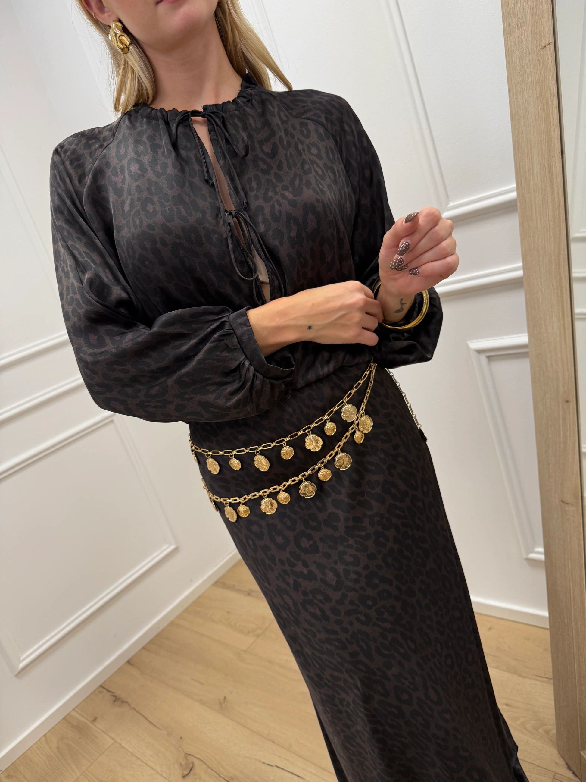 La modella è alta 170 cm e indossa tg 40.