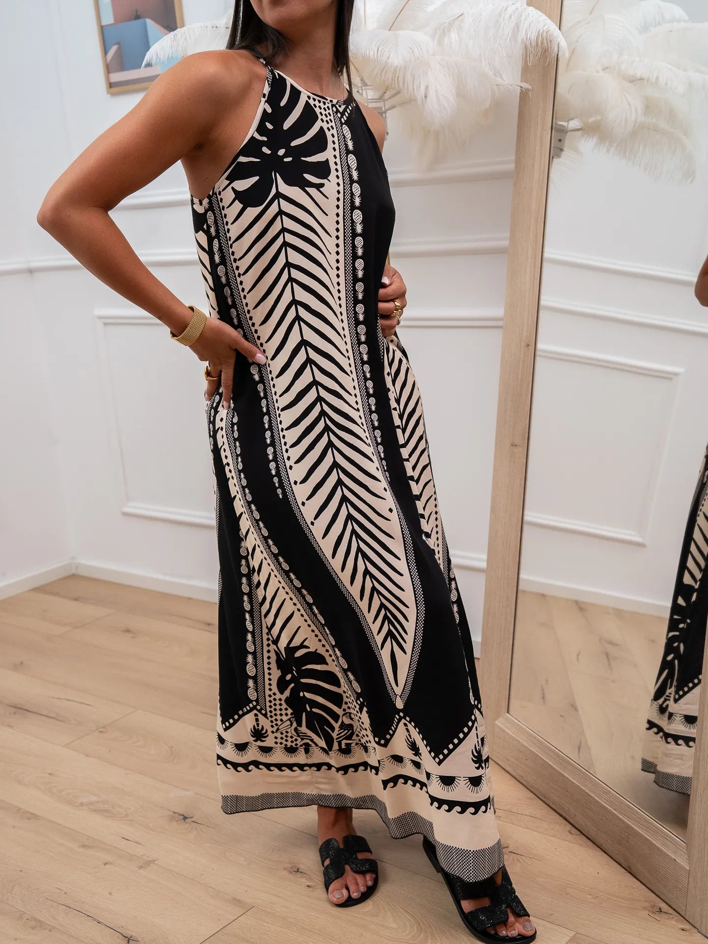 Vestito lungo Tropical burro, nero spalline fini - HaveOne