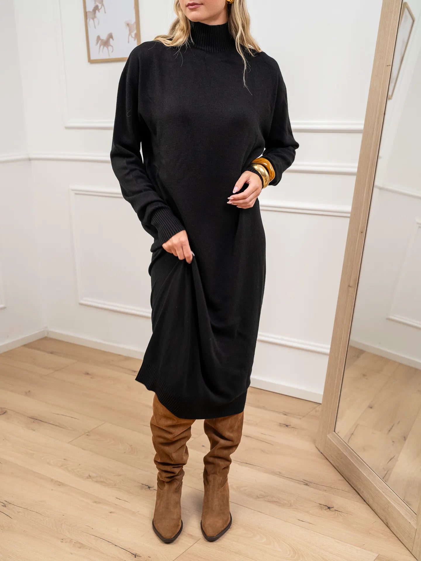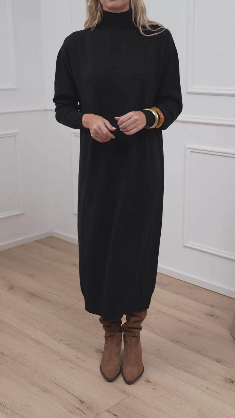 Vestito lupetto nero in viscosa - Kontatto