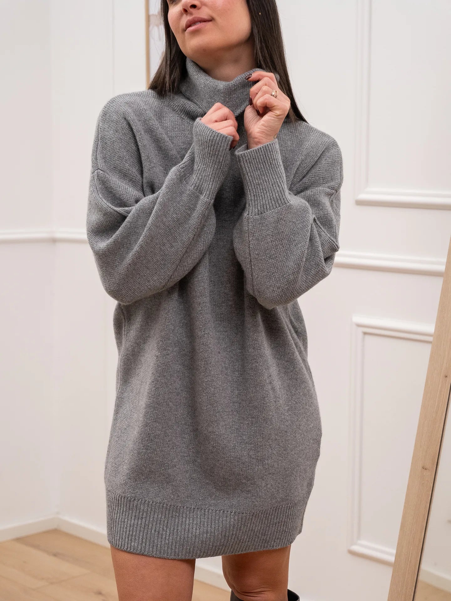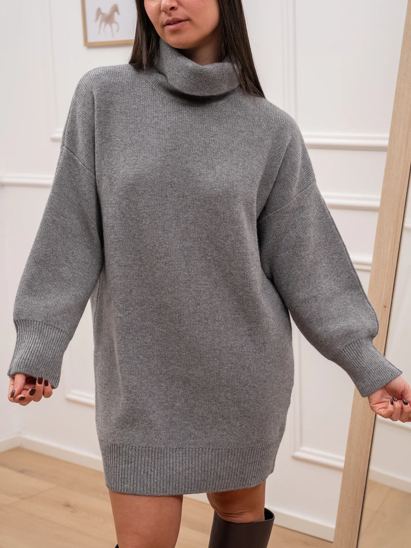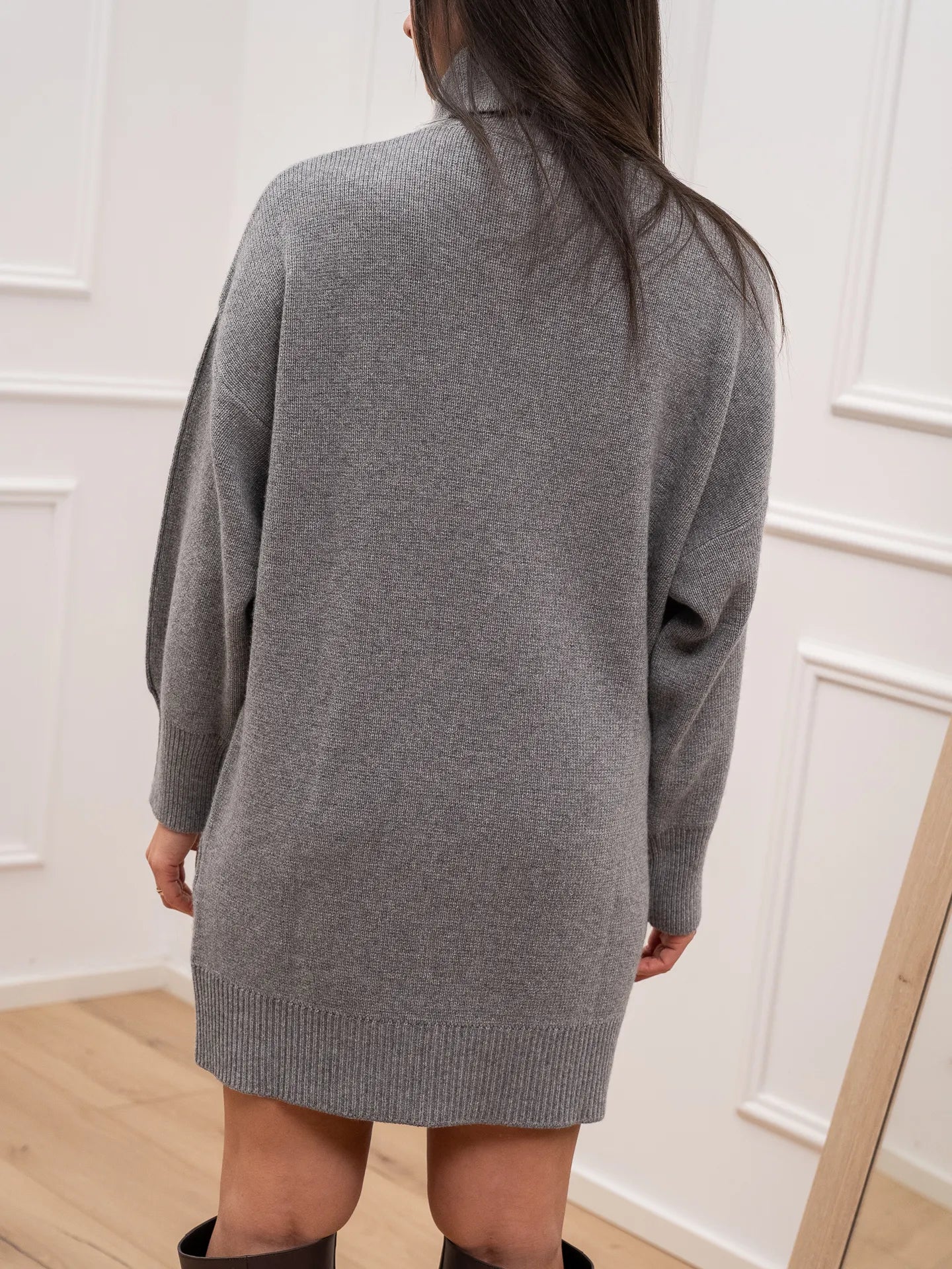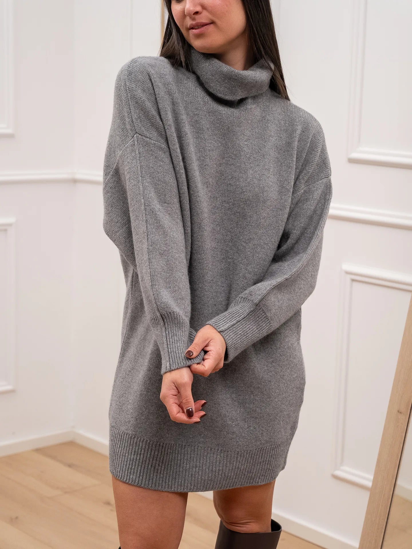 Vestito mini color grigio Vicolo. Modello dolcevita con collo a ciambella e maniche lunghe. Fit morbido. Maniche lunghe con spalla scesa.