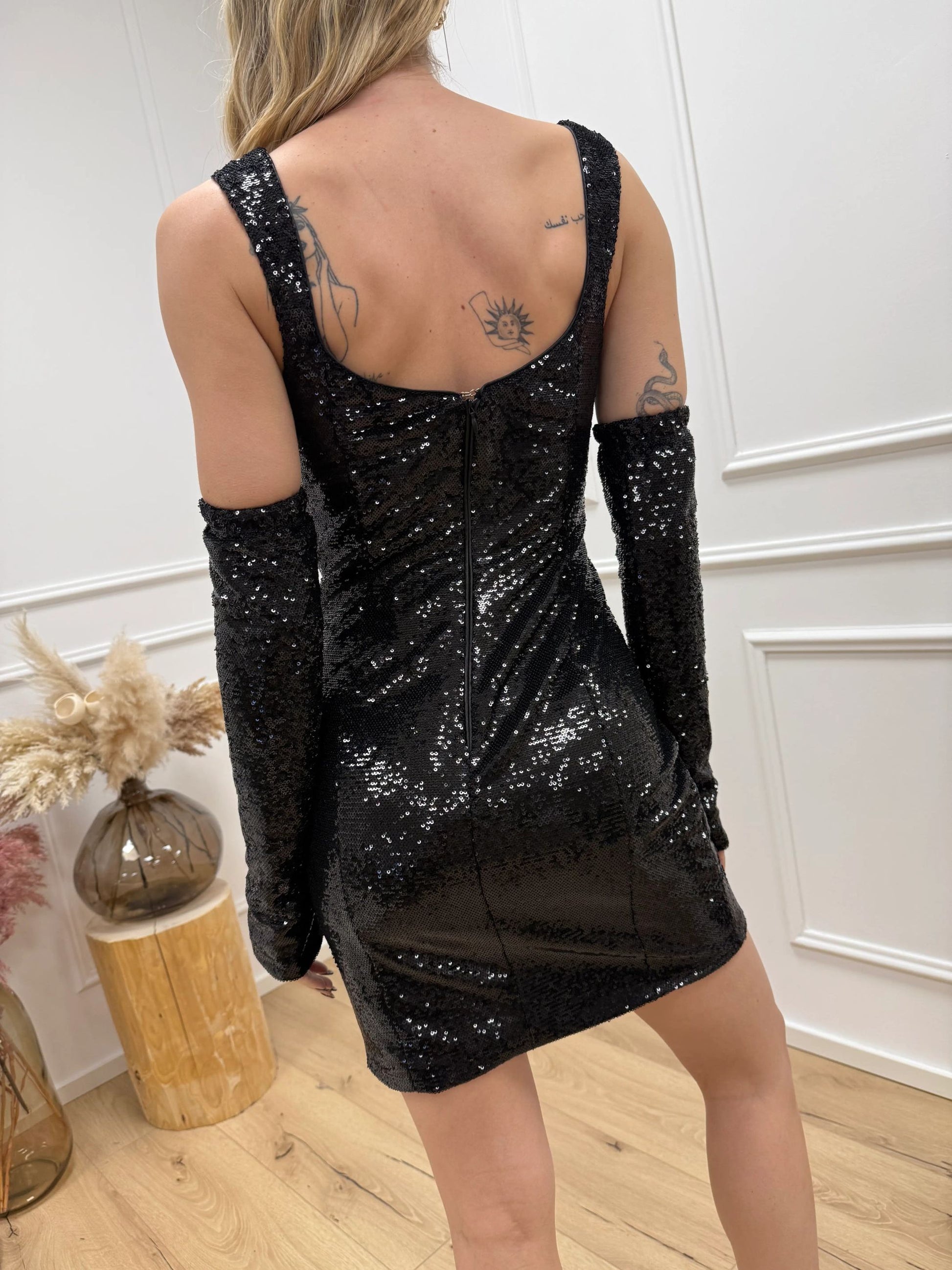Vestito mini Shiny nero con manicotti - Silence Limited