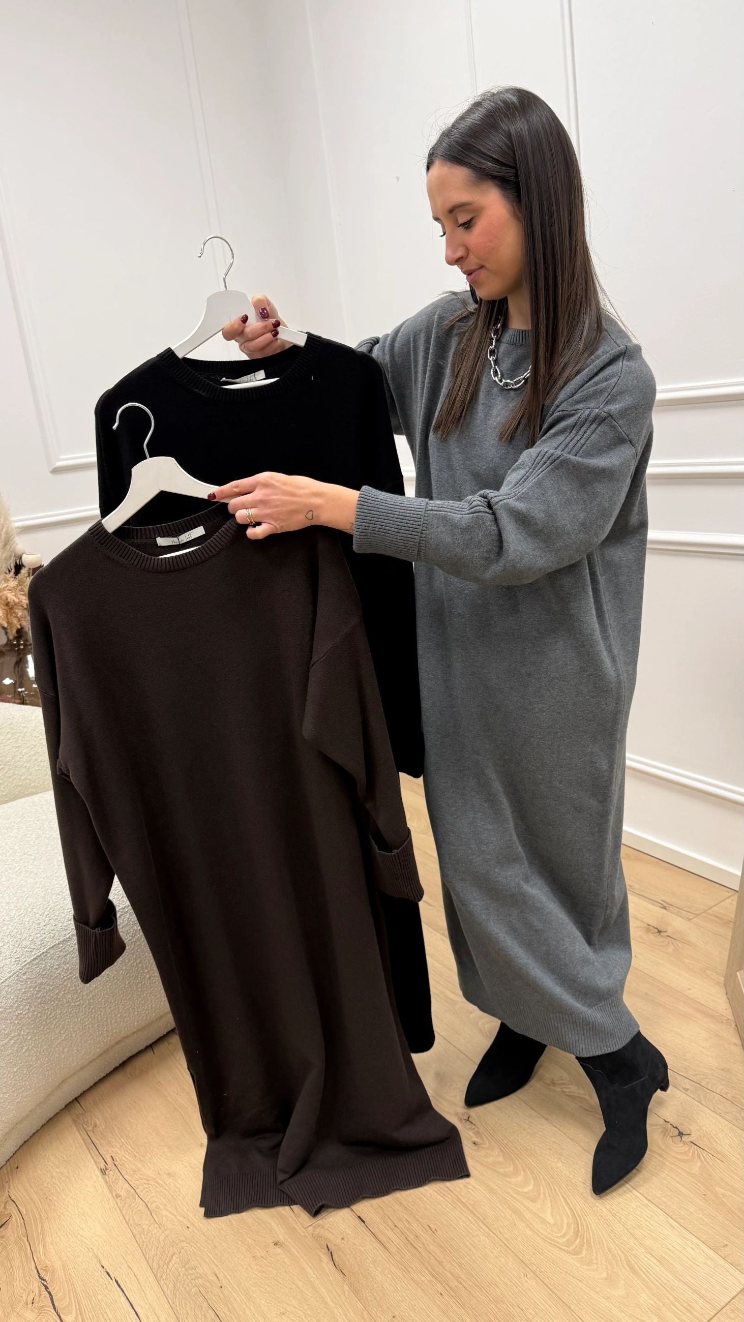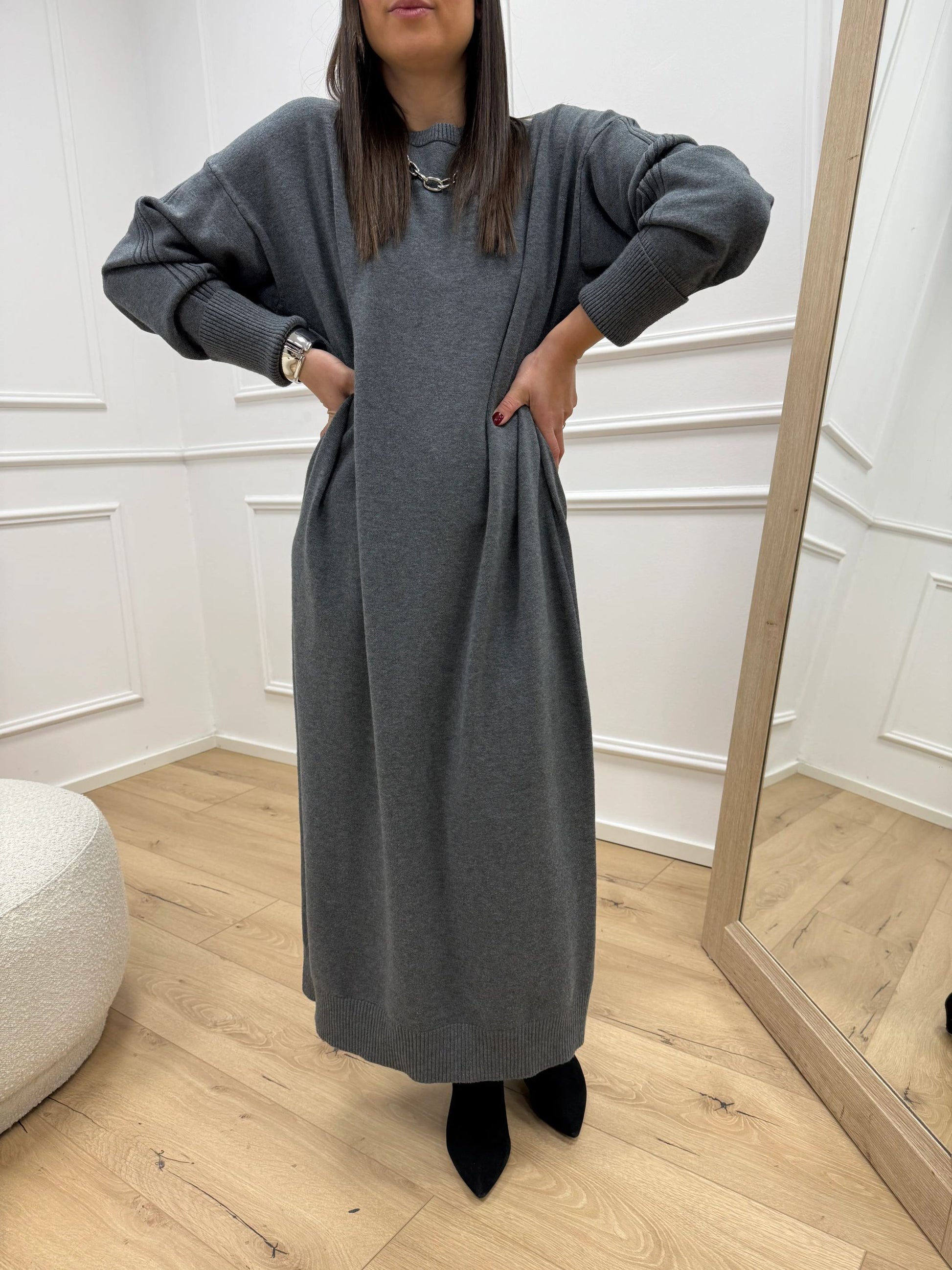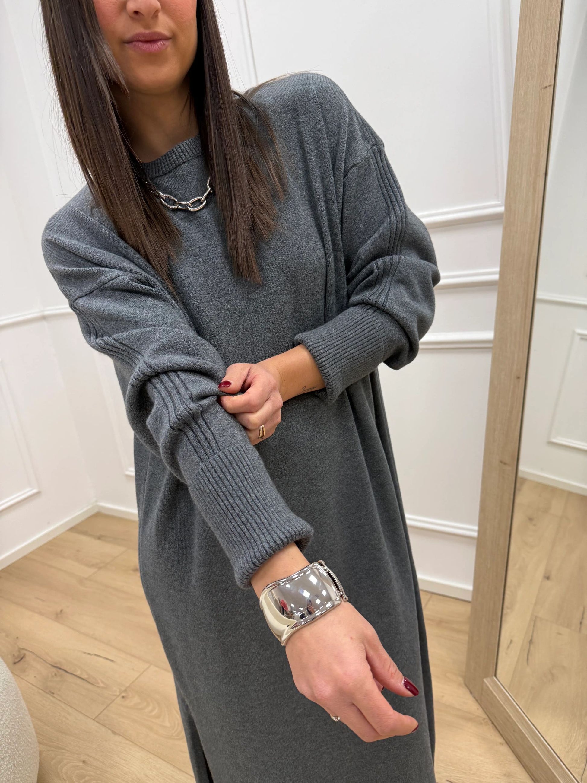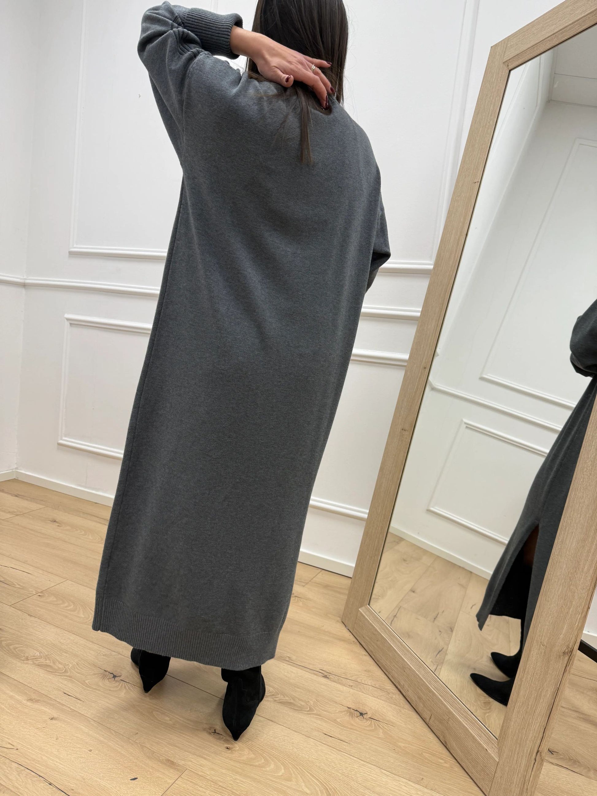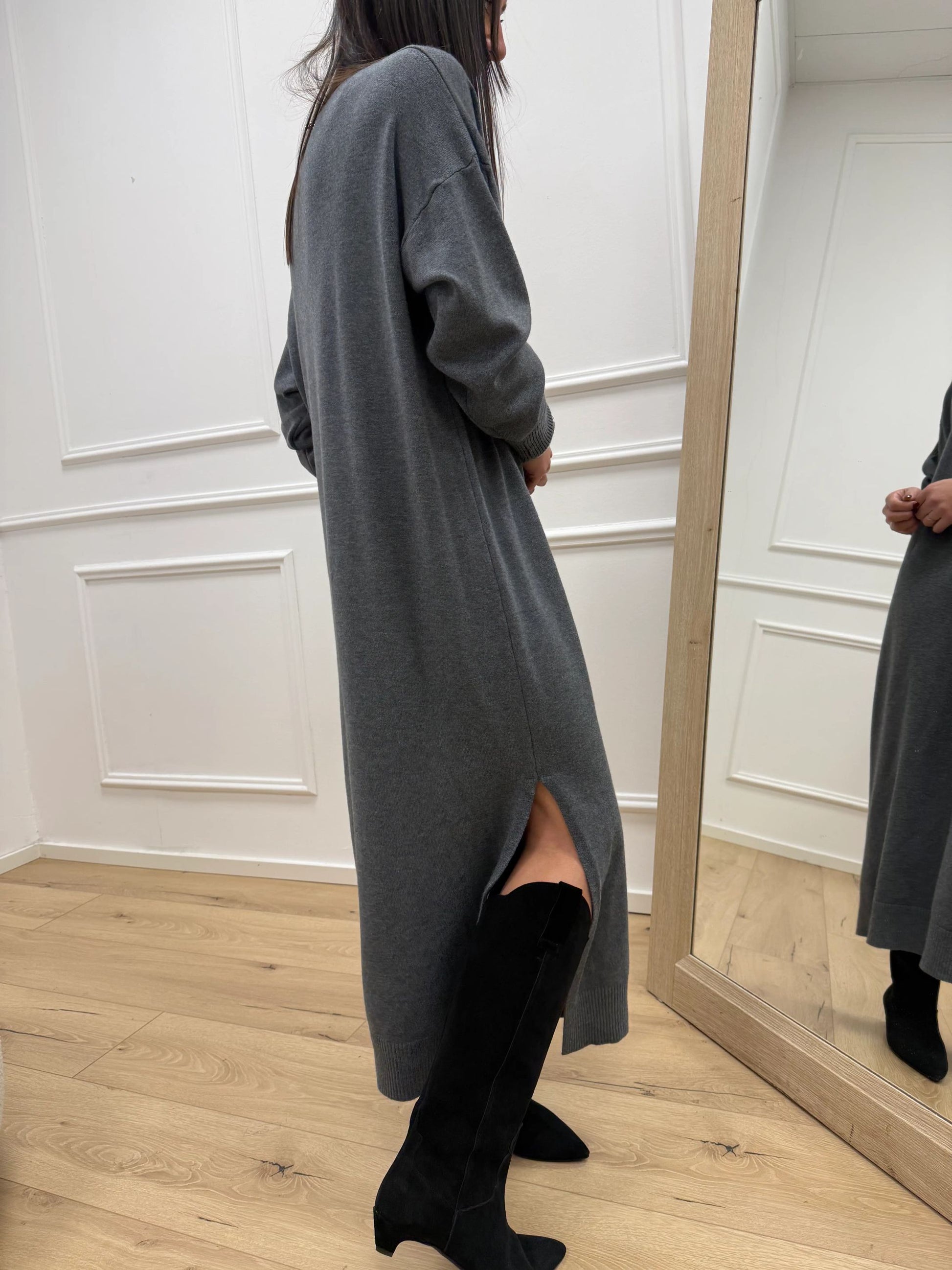 Vestito over grigio con spacco laterale - Philia Loft