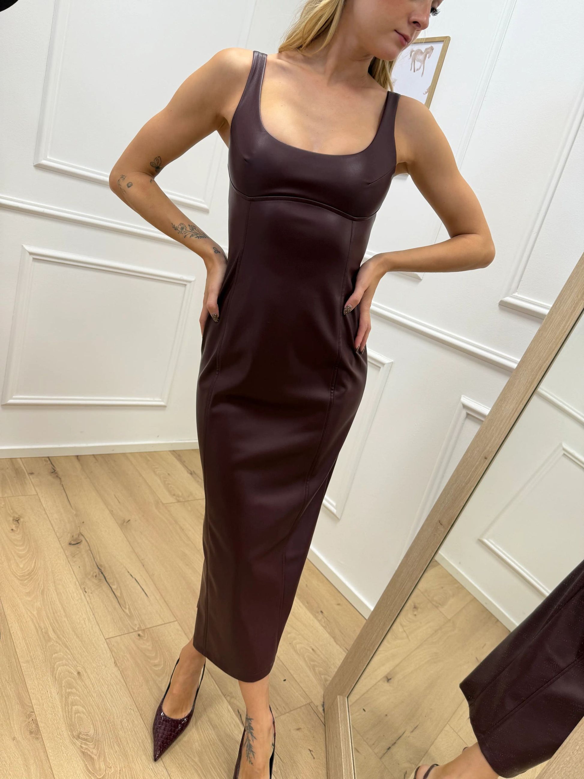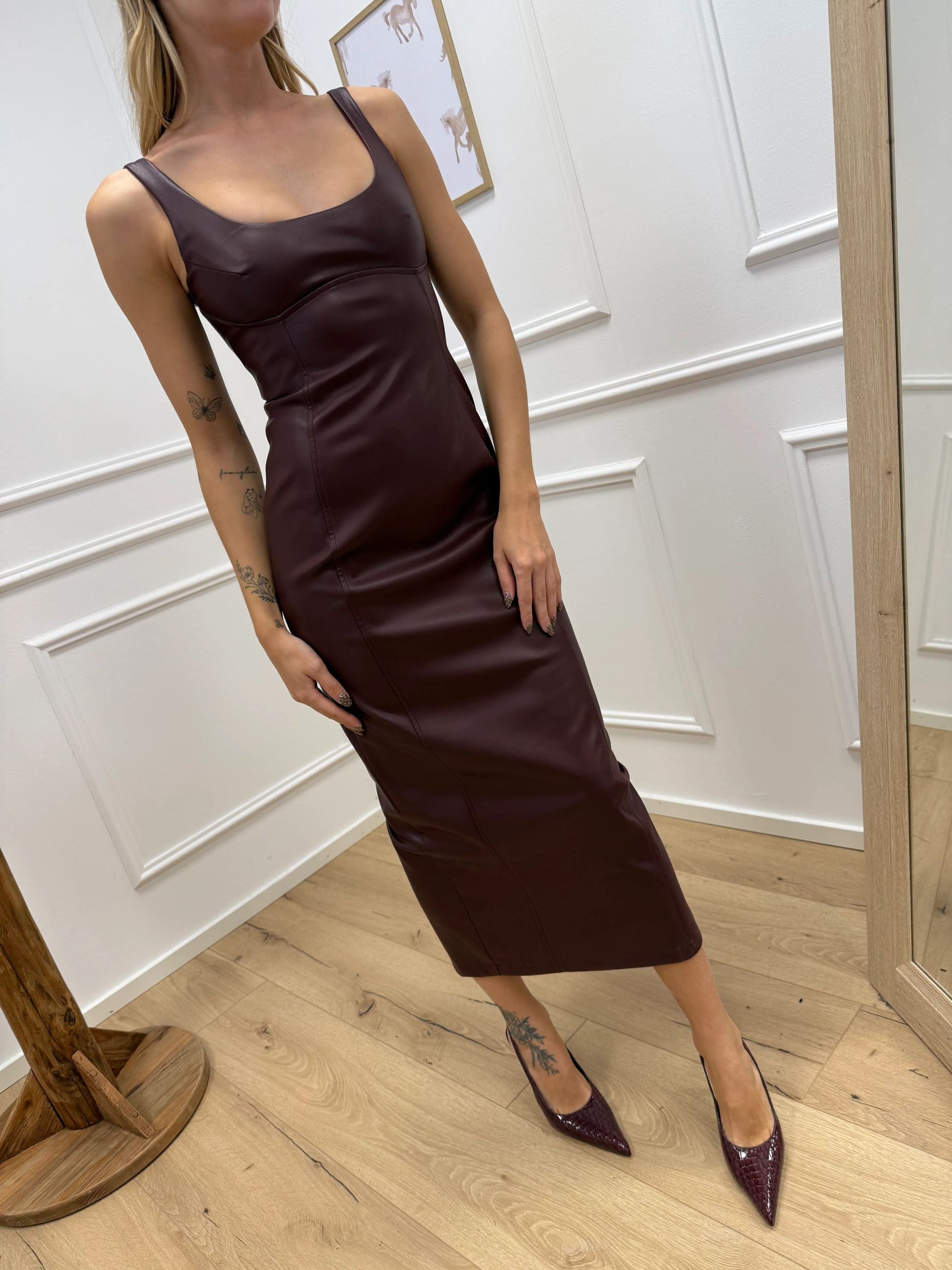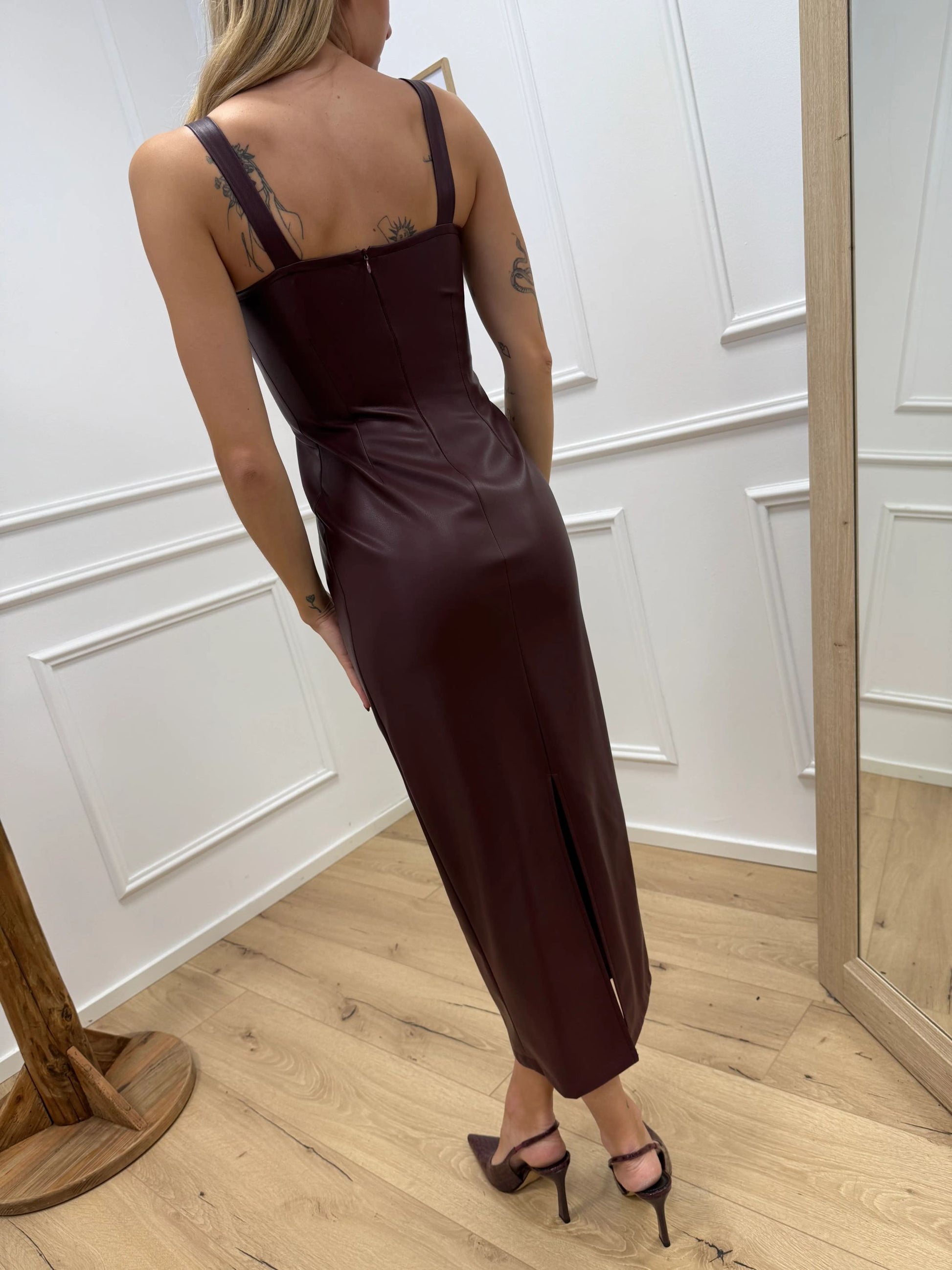 Vestito tubino in ecopelle bordeaux - SoAllure